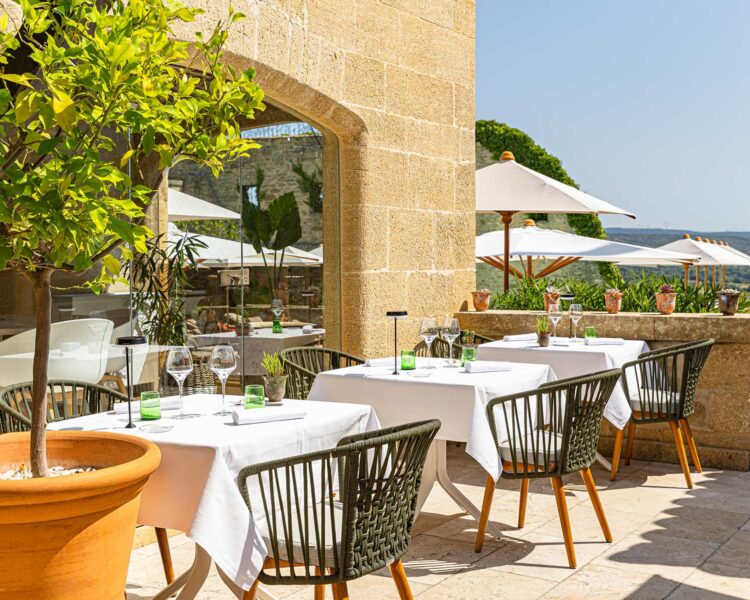 With sophisticated décor at the heart of a Renaissance building, the restaurant offers a gourmet menu for dinner and a light, casual lunch menu served poolside. It is accessed via a small bridge over the old village, where you can view the gargoyles and copper and glass lanterns…